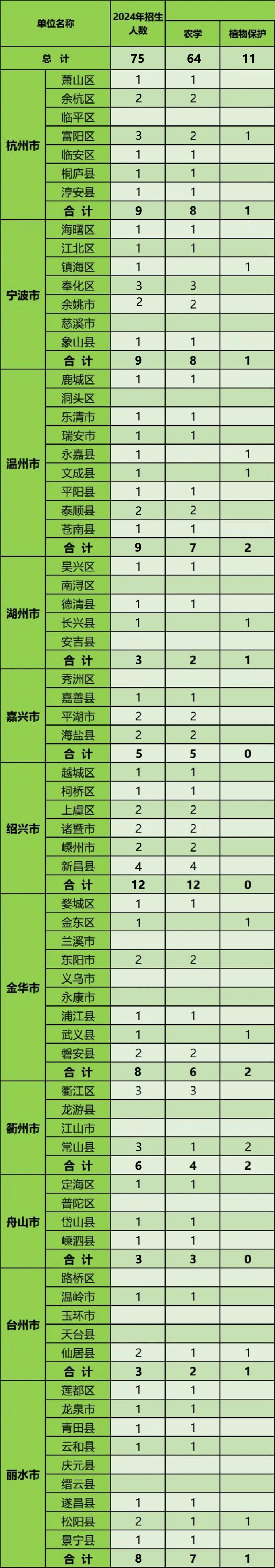 经浙江省农业农村厅、浙江省教育厅、浙江省人力资源和社会保障厅批准,2024年继续由公司承担定向培养基层农技人员工作,为省内部分县(市、区)定向培养基层农技人员75名,招生专业为农学、植物保护2个专业。有关招生事项简介如下: