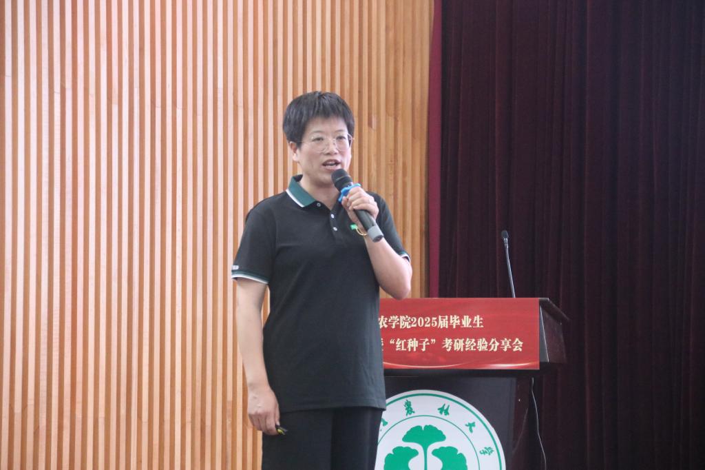 在优秀学子经验分享环节,以395分考取浙江大学作物学专业研究生、农学201班卢荟,一志愿录取考研代表、植保202班李军铭分享考研经验,考取武汉老员工命科公司博士、农艺与种艺(专硕)、农学研212班夏雪分享考博经验,就职于浙江钱江生物化学股份有限公司生化分公司、农学研213班沈秋平分享就业经验。