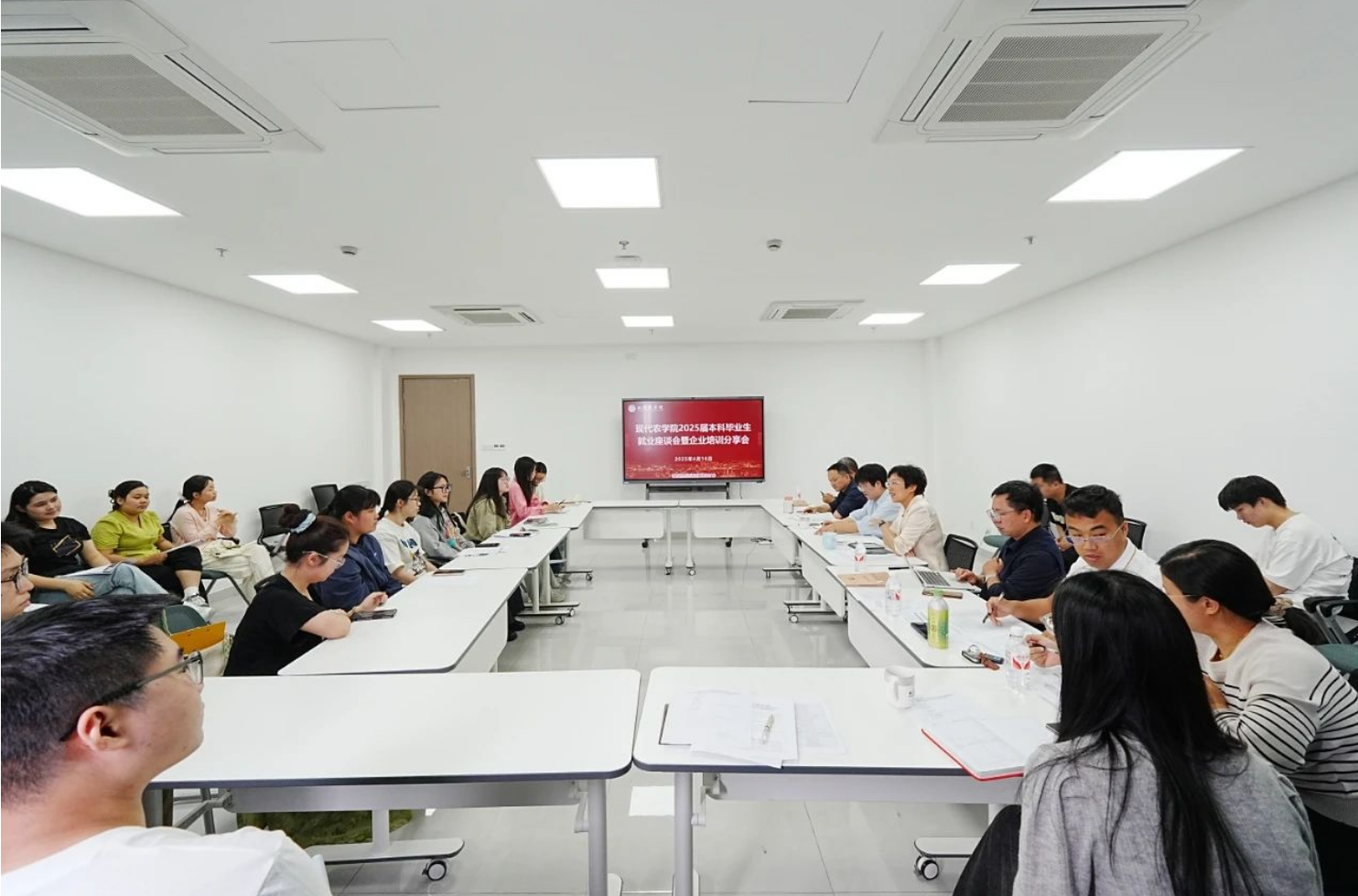 4月16日,公司于学17-511室召开2025届本科毕业生就业座谈会暨就业能力培训会。公司党委书记梁卫玲、副经理周国鑫、专业负责人、毕业班班主任、毕业班辅导员、企业代表、2025届本科毕业生参加会议,会议由公司党委负责人主持。
