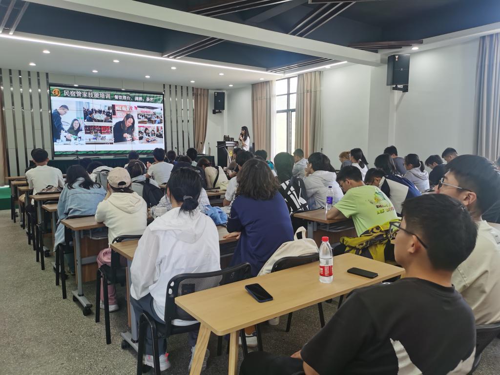 在省级乡村振兴实训基地-安吉盈元家庭农场,湖州市农民专家、安吉白茶首届非遗大师朱仁元为师生们介绍了农场的基本情况,重点讲解了信息化、智慧化的现代化管理模式;国家一级茶艺师顾州吉介绍了安吉白茶的历史、生产、加工、销售等相关知识;鲁家盈元培训公司负责人朱冰倩分享了自己放弃出国留学毅然决定返乡创业的经历。