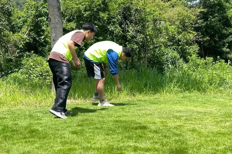 志愿者们以小组为单位,积极认真进行拔除杂草和捡树枝等任务。尽管天气炎热,每位志愿者还是认真仔细地对待自己的任务,不放过任何一处,全方位检查绿地环境,清理每一处杂草和落叶。
