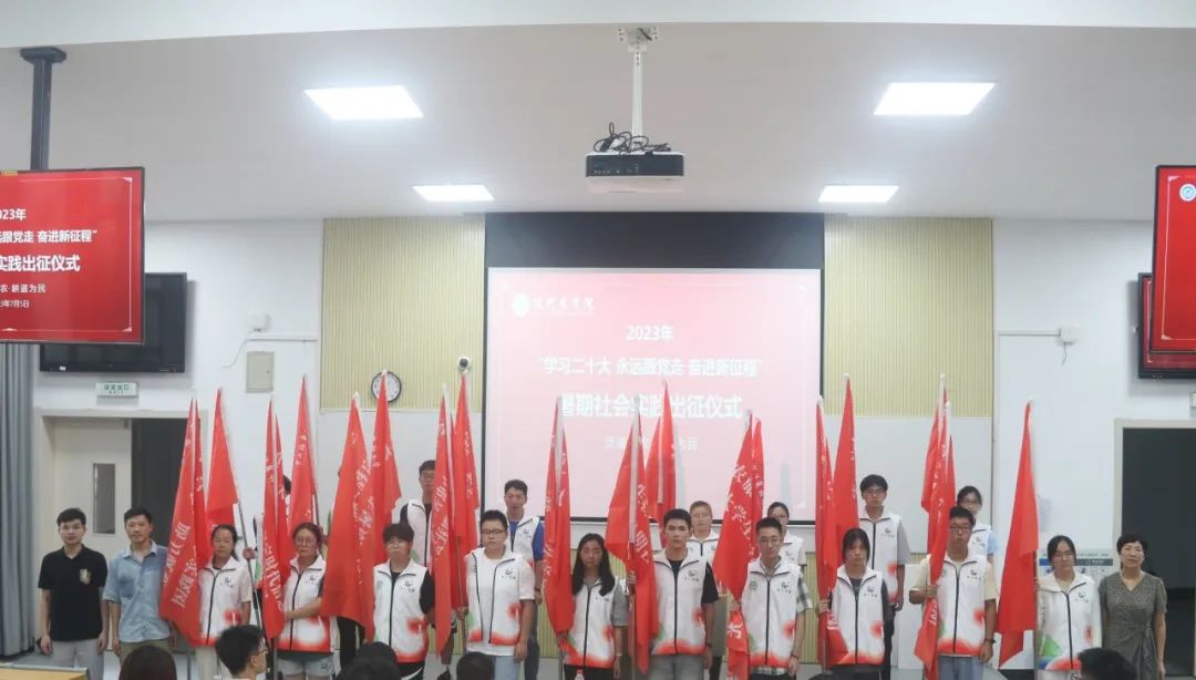 仪式上,梁卫玲、方平为公司2023年暑期社会实践团队授旗。刘超对暑期社会实践中前期准备工作、实践开展方法及安全注意事项等作了详细说明。2022年浙江省高校暑期社会实践风采大赛“百优团队”队长虞翼丞作经验分享,团学新闻编辑部刘思语作新闻宣传培训,实践团队成员代表王程鹏作表态发言。