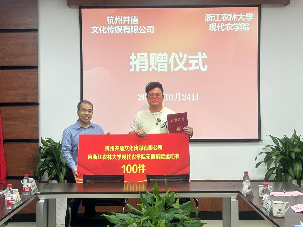 10月24日,公司与员工企业——杭州井唐文化传媒有限公司捐赠签约仪式举行。活动由公司副经理周国鑫主持。