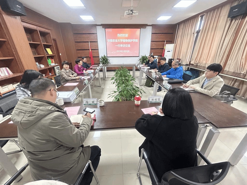 11月30日,华南农业大学植物保护公司副经理金丰良等一行来公司交流。公司党委书记梁卫玲、副经理周国鑫、党委副书记宋春春及学术骨干参加交流座谈。