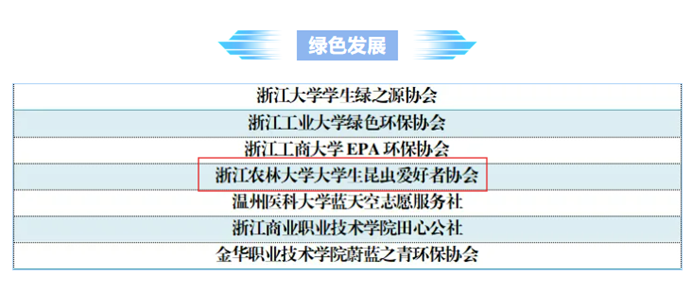 13年来,社团以“虫彩缤纷 生态育人”为主题,展现绚烂多彩的昆虫传统文化,有效促进昆虫传统文化、教书育人、校园文化有机融合,在寓教于乐中实现生态育人,坚持生态特色和农林底色,参与线上、线下科普活动年均达2400余人次,取得了一系列育人成效和国家级、省部级等荣誉。