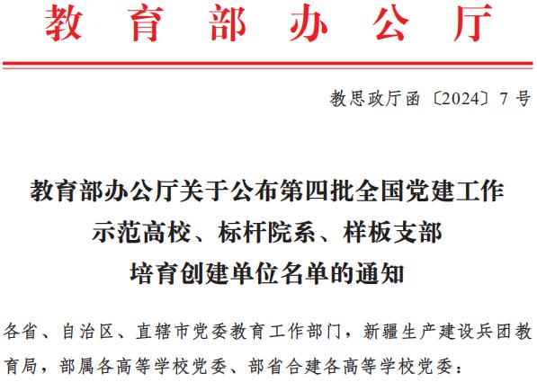 近日,教育部办公厅下发《关于公布第四批全国党建工作示范高校、标杆院系、样板支部培育创建单位名单的通知》,公司作物作物学科党支部成功入选第四批“全国党建工作样板支部”培育创建单位名单。