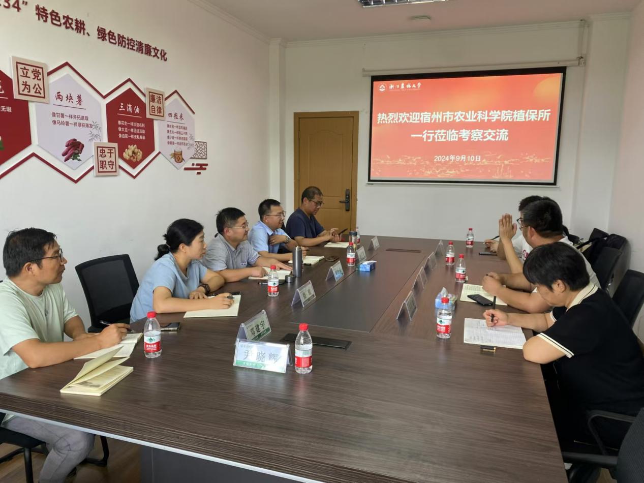 9月10日,安徽省宿州市农科院植保所所长刘兴舟一行4人来公司开展学术交流,旨在进一步落实双方战略合作协议,推进全面合作各项事宜落实落地。公司副经理赵光武、周国鑫及植保学科相关教师参与了接待。