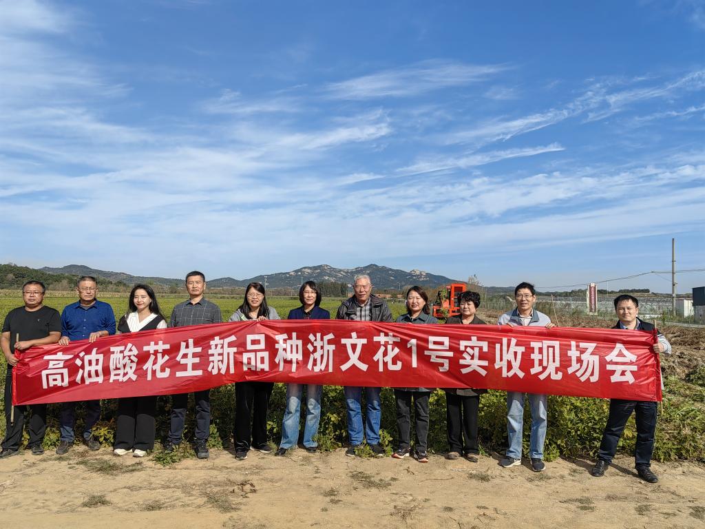 近日,公司郑志富教授团队与文登市佳禾种业有限公司联合研究,运用化学诱变育种技术结合高效理化筛选方法培育的高油酸花生新品种——浙文花1号,实测产量创威海市2024年花生高产纪录。