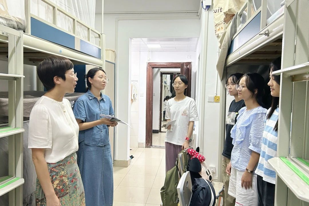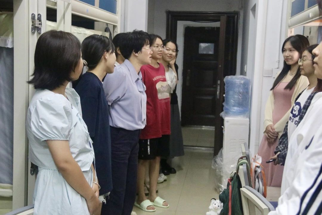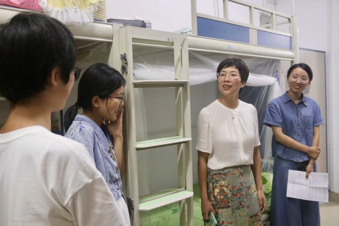梁卫玲、宋春春等一行人来到了公司本科女生的宿舍,亲切地问候刚刚步入校园的同学们,关心新生对公司的初印象、适应情况以及未来规划等,使新生深刻地感受到公司对新生的重视与关注。同时,针对不同寝室的新生情况,她们也给出了不同的意见与建议,表示新生们要跟随时代和前人的脚步,在大学里不忘初心、不断发展、不停追梦,成为更好的自己;叮嘱同学们要处理好寝室人际关系,珍惜大学时光,认真学习专业知识,紧紧抓牢课外时间,成为一名全面发展的高素质人才。