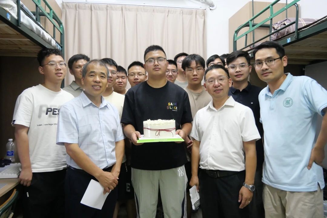 鑫、党委副书记宋春春在员工办辅导员以及2024级新生班主任的陪同下,于报到当晚走访新生寝室,并贴心地为生日的同学准备了公司定制的生日蛋糕。