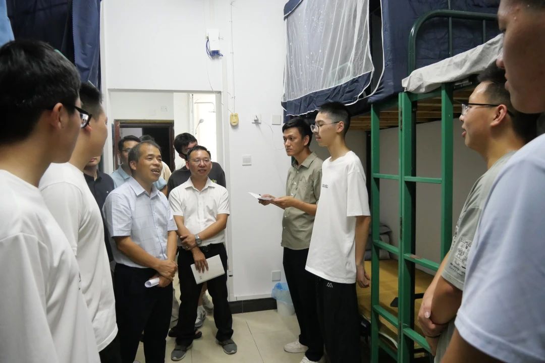 曾大力、周国鑫等一行人走访了公司本科男生的宿舍,给新生们送上了开学祝福,主动了解同学们的家乡背景和兴趣爱好,仔细询问同学们开学后是否适应以及有无遇到困难和问题,让新生们充分感受到了农院大家庭的温暖。同时,面对开学季频发的电信诈骗,他们温馨地提醒同学们要提高警惕,增强自我防范意识。最后,他们希望同学们可以平衡好劳逸之间的关系,鼓励同学们不忘来时路,走好脚下路,展望未来路,走向成功路,度过一段美好的大学时光。