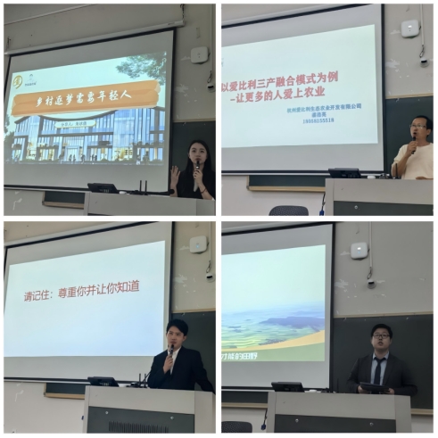 潘皓亮以“以爱比利三农产业融合模式为例——让更多的人爱上农业”为主题,介绍了山果湾葡萄的“五心”理念,以一产质量及品牌为基础,推动二产三产的融合发展,实现了农业现代化、城乡发展一体化、企业和农民共同增收的目的。同时他结合个人经历。鼓励同学们以“情怀+技能”双轮驱动理念,将专业知识转化为乡村振兴生产力。