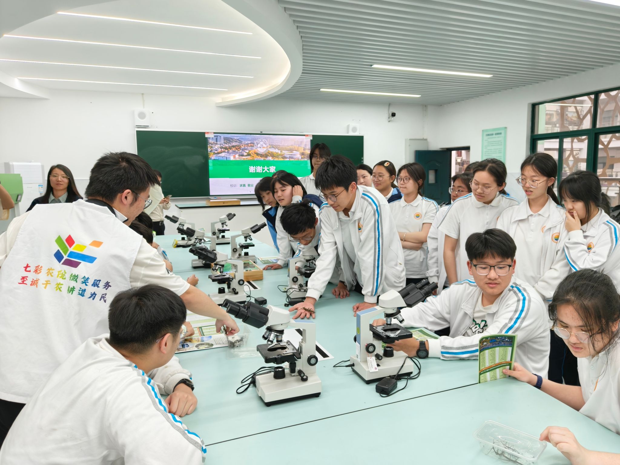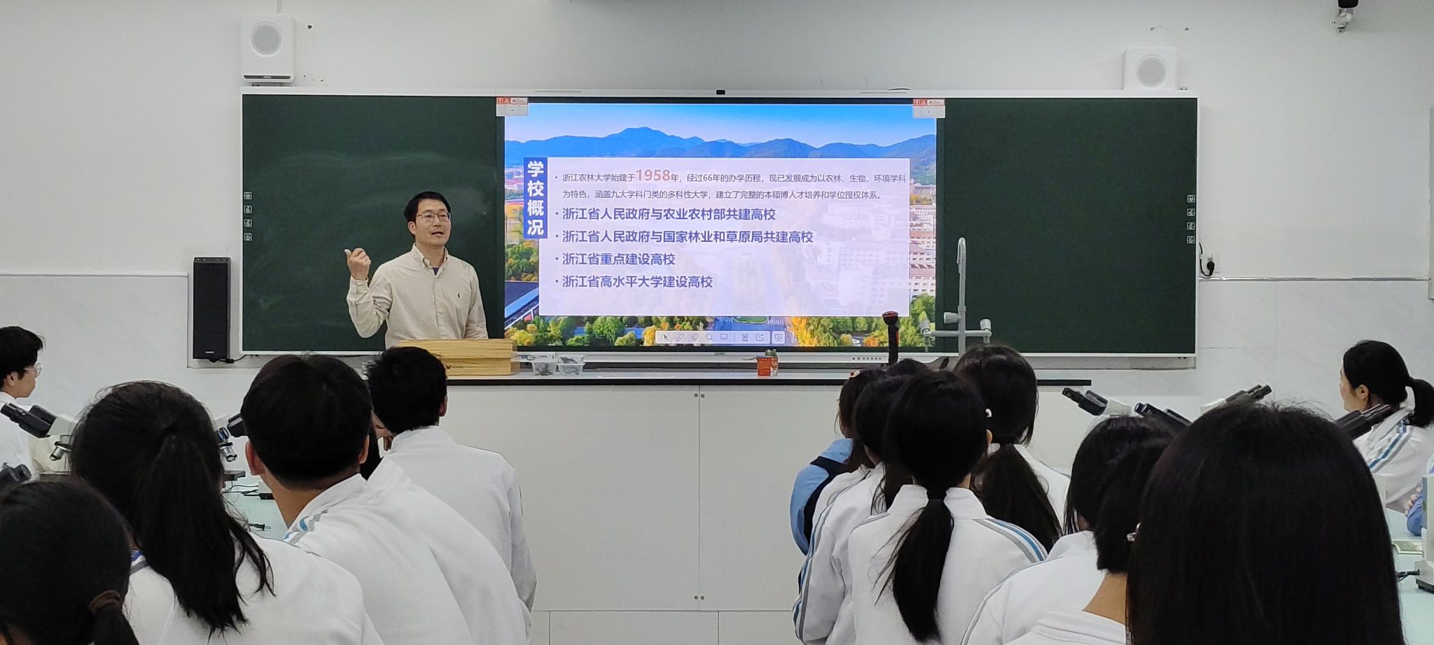 随后,公司一行移步教室。王吉锐为50余名西高员工作以“昆虫科普进杭州市西湖高级中学暨招生宣讲活动”为主题的讲座报告。王吉锐先从公司概况、招生政策、注意事项、咨询方式四个方面,对1xBET2025年招生情况进行了详细解读,介绍了公司的历史沿革、区位优势、办学实力、团队力量、科研成果等,并提供了公司招生咨询联系方式,为同学们的报考提供最大便利。后通过动态影像解析昆虫行为机理、显微观察昆虫器官构造、活体标本互动等多元化教学形式,给同学们带来了一场精彩的昆虫科普知识讲座,生动展现1xBET“新农科”人才培养特色,极大地调动了同学们的热情,起到了良好的招生宣传效果。
