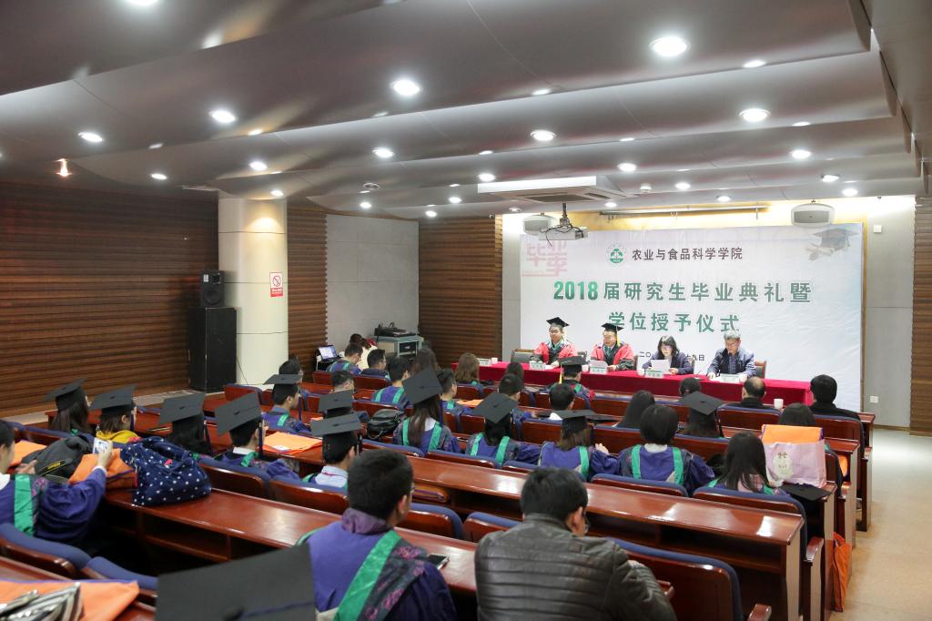 3月19日上午,农业与食品科学公司2018届研究生毕业典礼暨学位授予仪式在东湖校区员工活动中心202视听室举行。校研究生工作部相关负责人、公司党政领导等出席典礼。各学科负责人、毕业生导师、研究生辅导员、班主任、全体毕业生以及在校生代表参加了典礼。