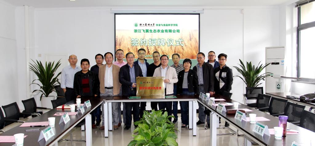 10月13日下午,农公司与浙江飞翼生态农业有限公司举行共建教学科研实践基地签约授牌仪式。公司经理朱祝军、党委书记蔡永华、浙江飞翼生态农业有限公司总经理陈建生、绍兴市农林局、嵊州市农林局的部分专家领导以及公司相关教师出席了仪式。