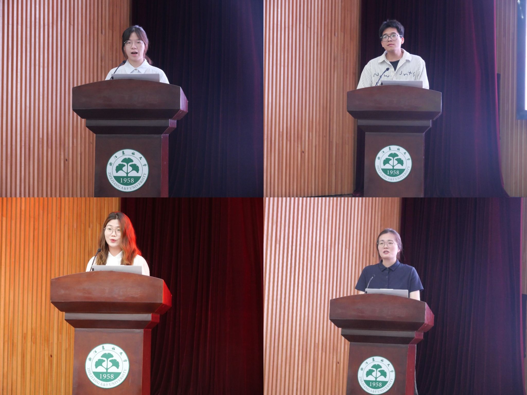 在优秀学子经验分享环节,考取浙江大学硕士研究生的农学212班何娟娟,考取本校研究生代表、农学研243班李军铭,考取南京农业大学博士的农学研221班刘扬分别分享了考研、考博经验,而通过江苏省公务员考试的农学研223班翟华彩分享了考公经验。
