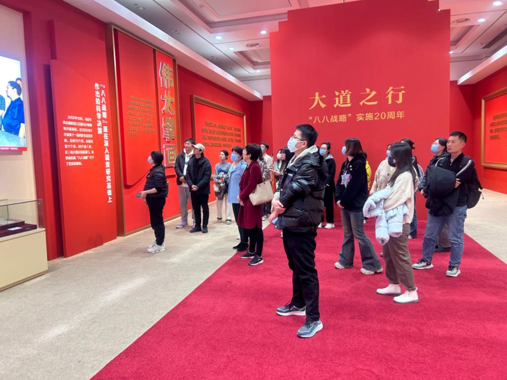 党员们先后参观综合展区“伟大擘画”“精彩蝶变”“勇立潮头”三大篇章和地方展区“共谱华章”,通过一张张生动的历史图片、一件件厚重的文献实物、一段段精彩的视频资料,立体式感受在“八八战略”指引下,20年来浙江全领域各方面发生的精彩蝶变,深刻领会“八八战略”历久弥新的真理力量和实践伟力。