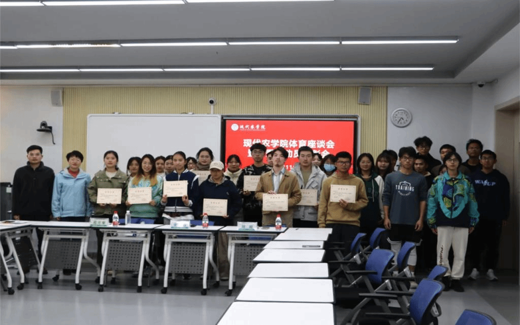 为积极践行公司“无体艺 不农林”的育人理念,进一步发扬公司学子团结协作和体育运动精神,鼓励更多员工参与体育锻炼,11月24日下午,公司于教1-303召开体育健康座谈会暨优秀运动员表彰会。公司党委副书记宋春春、2023级本科生辅导员范月琴、优秀运动员代表、班级体育委员代表、团学身心健康部代表参加会议。会议由公司团委书记刘超主持。