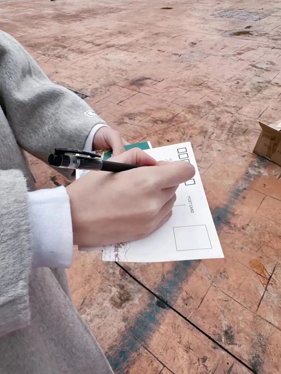11月12日中午,身心健康部于东湖食堂门口提前备好桌椅、明信片以及投递信封的信箱。各班心理委员手握信封,将同学们对未来满满的期许投入时光信箱。时光信箱的保存期限是两年,两年后,这份美好将会原封不动地返还各同学。投信现场,也有许多同学驻足停留,展开信纸,提笔入墨,将肺腑之言寄予未来,身心健康部也准备了精美的明信片相赠。