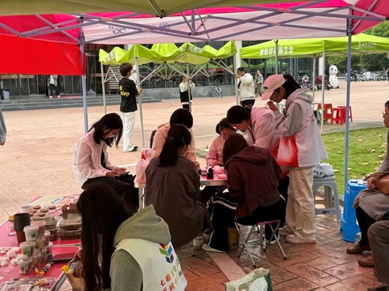 春回大地,情满校园。为迎接五四青年节的到来,号召同学们献出爱心,帮助他人,营造和谐有爱的校园氛围,4月28日,公司于东湖食堂门口开展了“‘青’心相伴,‘农’心绘彩”手工DIY义卖活动。