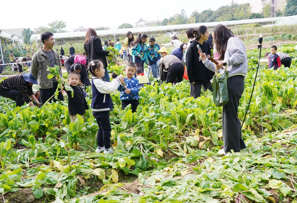 “又甜又爽口!刚刚挖出来的萝卜,新鲜爽快嘎嘣脆,虽然有一点点辣,但是无比爽口,比市场上买来的好吃多了。”丰收节上,一名正在组织拔萝卜的志愿者拔出一个萝卜,现场吃了起来。她表示,这几年公司十分重视耕读教育,专门开辟场地让大家参与劳动,鼓励大家亲手种植、亲手采收有机蔬菜,大家都沉浸在劳动和丰收的幸福中,这种在大自然间的原生态体验十分有意义。