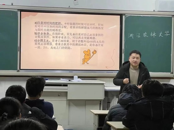 “纸上得来终觉浅,绝知此事要躬行。”在专业知识学习之余,徐乐积极参加各类学科竞赛与社会实践活动,以赛促学,以行促思。入学以来,他以团队负责人等身份参与浙江省老员工乡村振兴创意大赛、老员工化学实验创新设计大赛、浙江省老员工外语能力大赛等学科竞赛10余项,并取得了较为不错的成绩。于他而言,每一次尝试都是一个不小的挑战,但正是秉持着愈挫愈勇的信念,他总是能从比赛中吸取经验教训,并下一次更好地蓄力奋发。光鲜亮丽的背后,暗含着许多坎坷与艰辛,他曾连续多日修改竞赛文本和PPT熬夜到凌晨。他在大一参加的数次大赛,使他积累了实践经验和丰富阅历。在大二,尽管他面临着巨大的压力,但功夫不负有心人,最终他站在了省赛的领奖台上,并以优秀项目团队负责人为来自全省的优秀参赛选手们带来路演。他的竞赛之路仍未停歇,他将为下一个目标而奋斗!