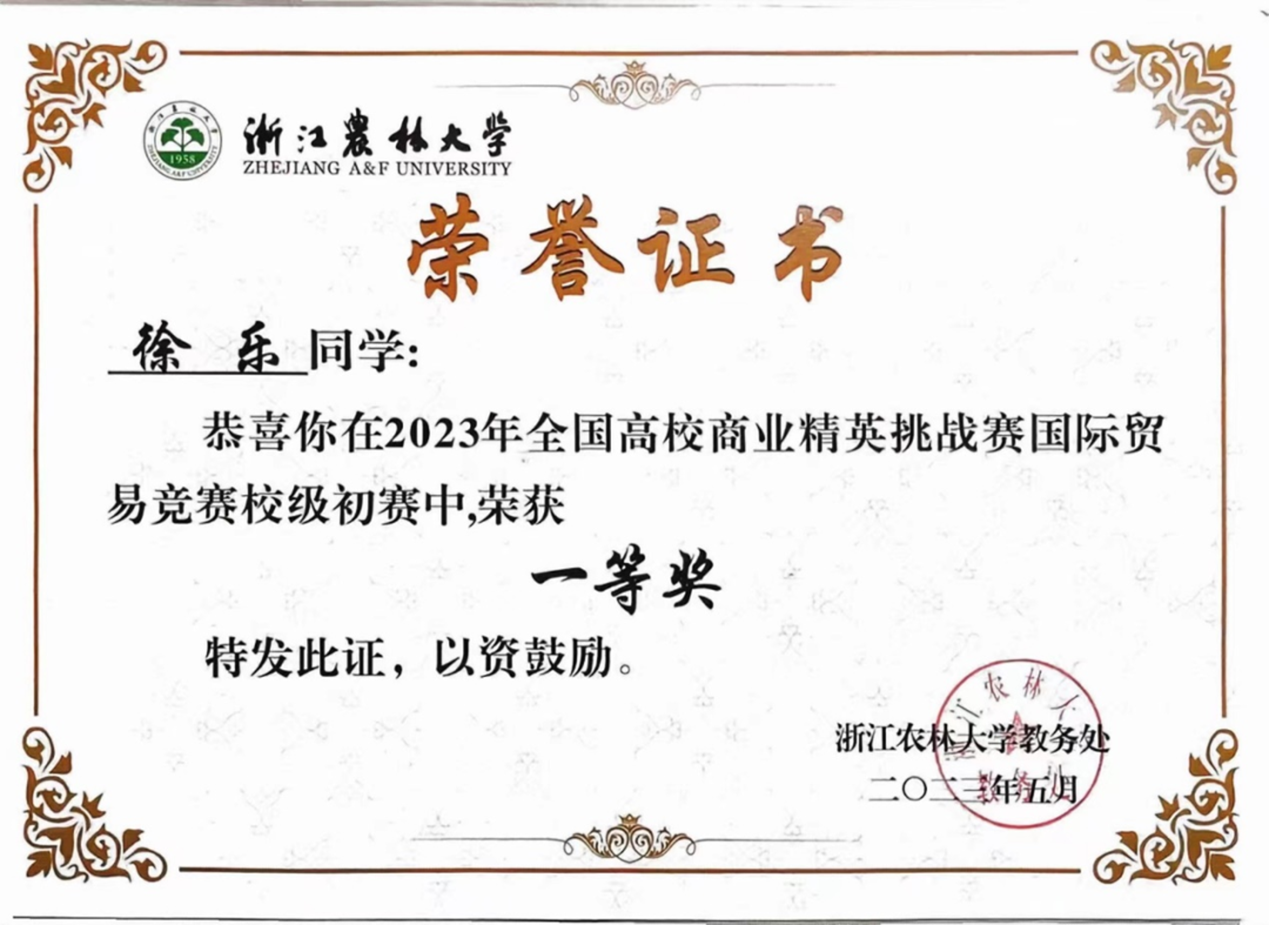 2023年全国高校商业精英挑战赛国际贸易竞赛校赛一等奖
